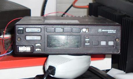 Transmit Section - Motorola Spectra, 35 watts. The spectra looked pretty rough when we first got it. Dirty, beat up, missing some buttons and the LCD had crapped out. We managed to dig up an old spectra head and replace the bad LCD with the good one out of the good head. We kept the old head because it had a hard switch in it, instead of the typical soft switch used in spectras.