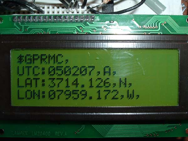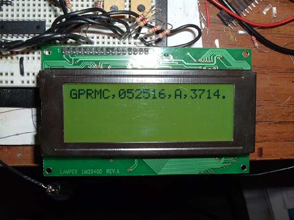 I got the LCD working with a simple routine in C. I read in a raw NMEA data string and displayed the first 20 characters. Now to write the rest.